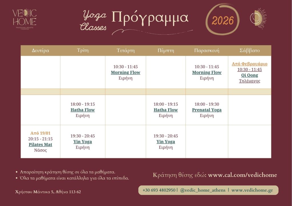 Η κράτηση θέσης είναι απαραίτητη σε όλα τα μαθήματα.